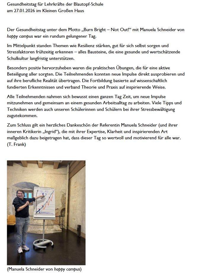 Das Deutsche Schulportal hat einen kurzen Überblick übder das pädagogische Konzept der Blautopf-Schule zusammengestellt, den Sie hier finden können