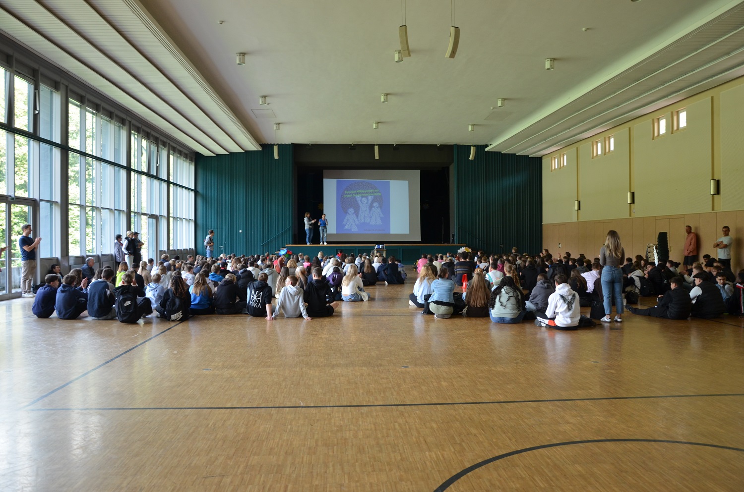 ersten Schülerversammlung in der Stadthalle zusammen.