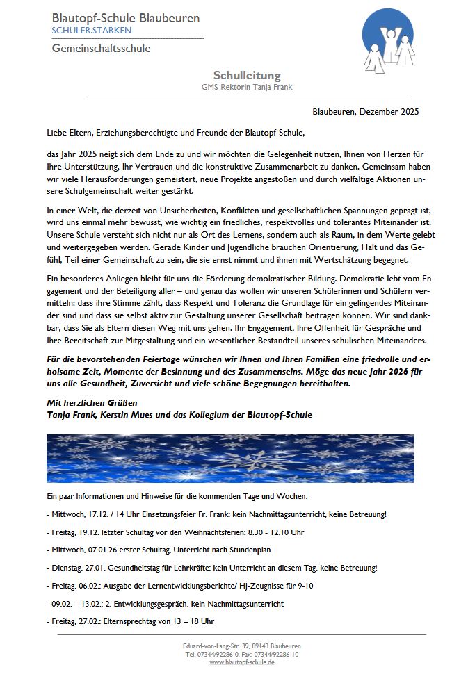 Herzlich willkommen bei der Blautopf-Schule in Blaubeuren